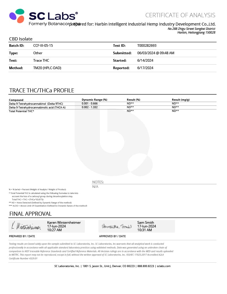 この透明性により、顧客にCBD原料に関わる製造過程を理解していただき信頼性と安心安全性を高めています。